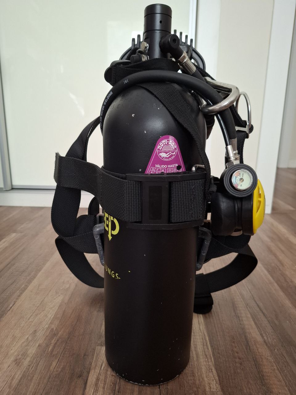 Com sempre, en Jordi brutal!! dit i fet, em va fer la revisió visual anual i me la va omplir. Em va dir que tot ok, i que de moment tirés amb la primera etapa i amb el regulador, que si al final la primera etapa fallés (mes endevant) doncs que la botella es podria aprofitar i que se li podria posar una griferia. Igualment em va dir que quan fós així, que podría adaptar-la a el meu regulador cressi MC9 perfectament.
